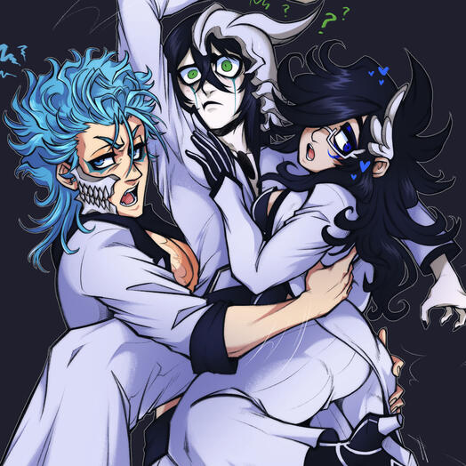 I'm a nonbinary Chicano artist of dreadfully pale palor residing in Texas, and I've regrettably been afflicted with the grimmulqui mind virus longer than some humans have been alive: @Kubo, you owe me a lifetime's worth of compensation for the brain damage you've inflicted upon me.As a long-time fan of Bleach, it's difficult for me to convey just how foundational my affinity for Ulquiorra and Grimmjow has been on me as a person: One of my first forays into the world of OC×Canon was a ship I'd created with Ulquiorra around 2006, and while that iteration didn't survive the years, my obsesssion with grimmulqui as a pairing has held strong ever since first becoming yaoi-pilled shortly after.[15shipping] is a long-overdue testament to just how much the Cuatro and Sexta mean to me, and will continue to mean to me well into the future. They're freaks, but they're my freaks, and I genuinely wouldn't have it any other way.